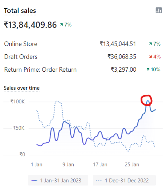 And as you can see…by the end of the month of January, the brand hit ₹1 Lakh sale day.
