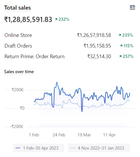 As you can see, since January end, the brand has achieved about ₹1.28 Crores in revenue..in just three months